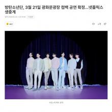 防弹少年团确定3月21日举行光化门公演 通过Netflix直播