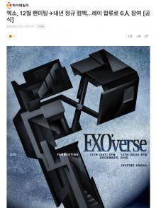 EXO 12月粉丝见面会!明年正规专辑回归 张艺兴参加