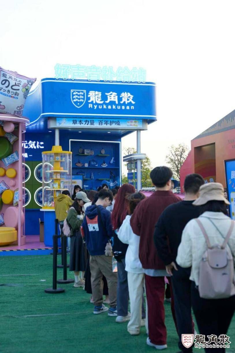除了贴心的咽喉护理,龙角散还在“好声音补给站”内设置有以品牌IP龙宝为主题的打卡区,乐迷和观众可以在现场与龙宝拍照合影,留下快乐瞬间。与此同时,龙角散全系列咽喉护理产品也在“补给站”内展出,乐迷们在感受龙角散清润体验的同时,也能深入了解龙角散品牌及其旗下系列护嗓产品。在“好声音补给站”的互动环节中,“好声音刮刮乐”备受乐迷们的喜爱。通过刮刮乐,用户可以刮出超多限定品牌周边和产品,吸引了大量乐迷驻足参与。