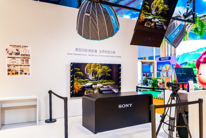 现场展示的空间现实显示屏(SRD)为专业创作者提供了裸眼3D内容创作与呈现工具。而索尼电影感直播-无界商显方案则融合了索尼相机、BRAVIA商用显示器与音频设备,为直播行业提供高画质、高稳定性的端到端解决方案,助力内容创作提质增效。