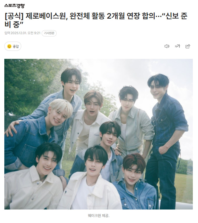 此次决定是成员们出于对组合的深厚情感以及为回报ZEROSE不变的厚爱而共同作出的,他们计划以完整体继续活动至3月。为此,组合正在准备《2025 ZEROBASEONE WORLD TOUR ’HERE&NOW》安可场演唱会及新作发行事宜。