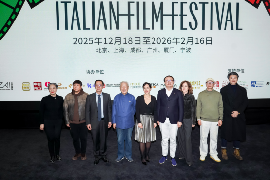 2025年12月18日晚,由中影集团主办,中影集团对外交流与合作部与中艺国际合作举办的2025意大利电影展隆重开幕。中影集团副总经理刘春,意大利驻华大使馆文化副参赞艾丽莎·梅西娜,著名导演谢飞、霍建起、章家瑞、刘泰风,青年演员孙帅东、吴芊妤、影展联合承办方中艺国际董事长、意大利繁花电影节主席张修中,中影影管总经理周莉,天天中影总经理刘喆等莅临现场。