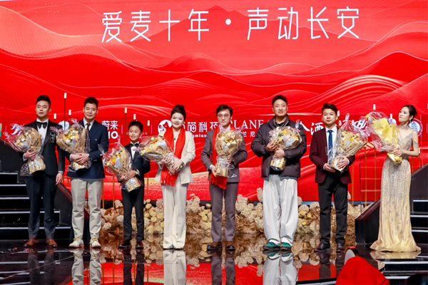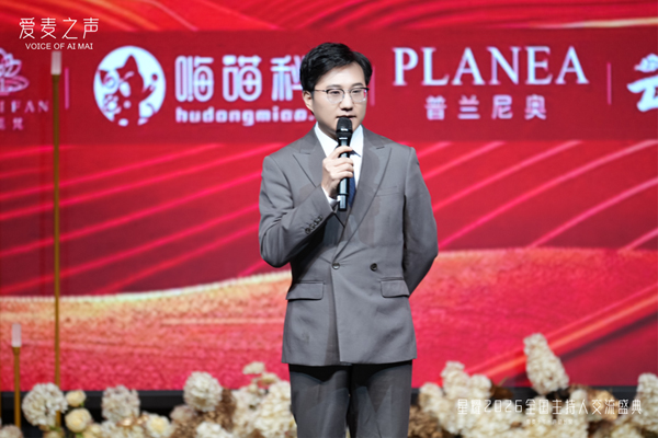 晚宴期间,特别设置了“爱麦十年”致敬环节,通过少年派网红主持人洪浩轩的引语风采秀,邀请品牌创始人子俊老师登台分享。子俊老师深情回顾了爱麦之声十年来与全国主持同仁并肩同行、以声传情的成长历程,细数行业变迁与品牌坚守,引发全场强烈共鸣。