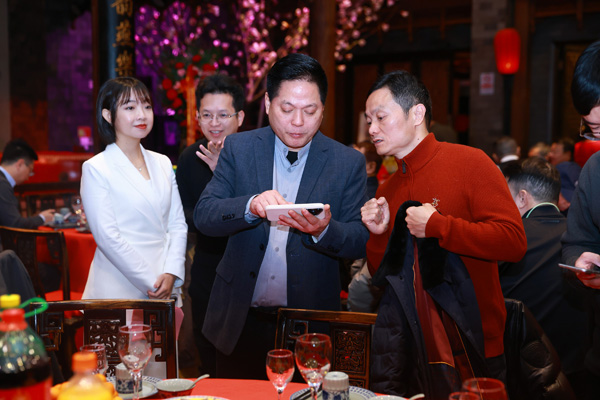 主持人苏菲儿带领王乾、徐海涵走下台与徐美月、张建良、张绍毅、张翼伟、沈发章等精英乡贤近距离互动交流,苏菲儿还带领在场嘉宾玩起了面对面建群抢红包游戏,将活动氛围推向高潮,大家在欢声笑语中增进情谊,充分感受同乡团聚的温馨。
