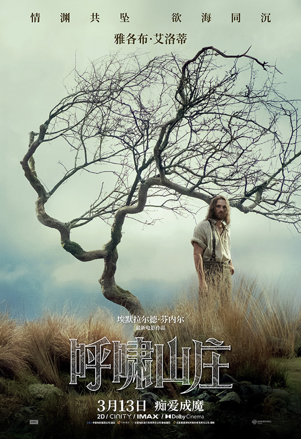 《呼啸山庄》将于3月13日以2D、CINITY、IMAX、Dolby Cinema格式登录全国影院,为观众呈现这一全球知名文学作品的焕新影视改编,敬请期待。