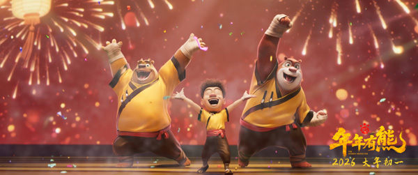 MV还创新融入了别具一格的地域特色小巧思,强哥带头献上了一段天津快板:“夸一夸您这好学业,天天顶呱呱,职位薪水翻着倍,钞票哗啦啦”。歌词中熊二仍惦记着吃到蜂蜜的幸福,还被光头强吐槽“忘不了吃”,贴近生活的歌词编排搭配可爱俏皮的角色互动,让这份新春祝福更加落地,直击人心。多年来,熊强三人组始终在新春佳节与观众共贺团圆,2026年新春,更是即将陪伴观众完整走过十二个生肖年。值此特殊节点,《熊出没》大电影以新作《熊出没·年年有熊》紧扣“过年”这一核心主题,用极具中式奇幻感的视觉呈现,讲述最接地气的暖心故事,为大家传递最浓郁的新春年味。2026大年初一,敬请期待!