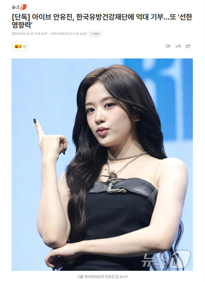 安宥真平日里以持续践行公益善举闻名。去年她与同队成员张元英共同出演tvN《You Quiz on the Block》,将答对问题获得的奖金全额捐赠给国内贫困儿童。此外,安宥真还与IVE成员们一起参与了2023年土耳其-叙利亚地震紧急救援、2025年庆尚道地区山火灾害援助,以及同年香港重大事故相关捐赠等多项公益活动,持续以偶像身份传递善意,成为许多人的榜样。
