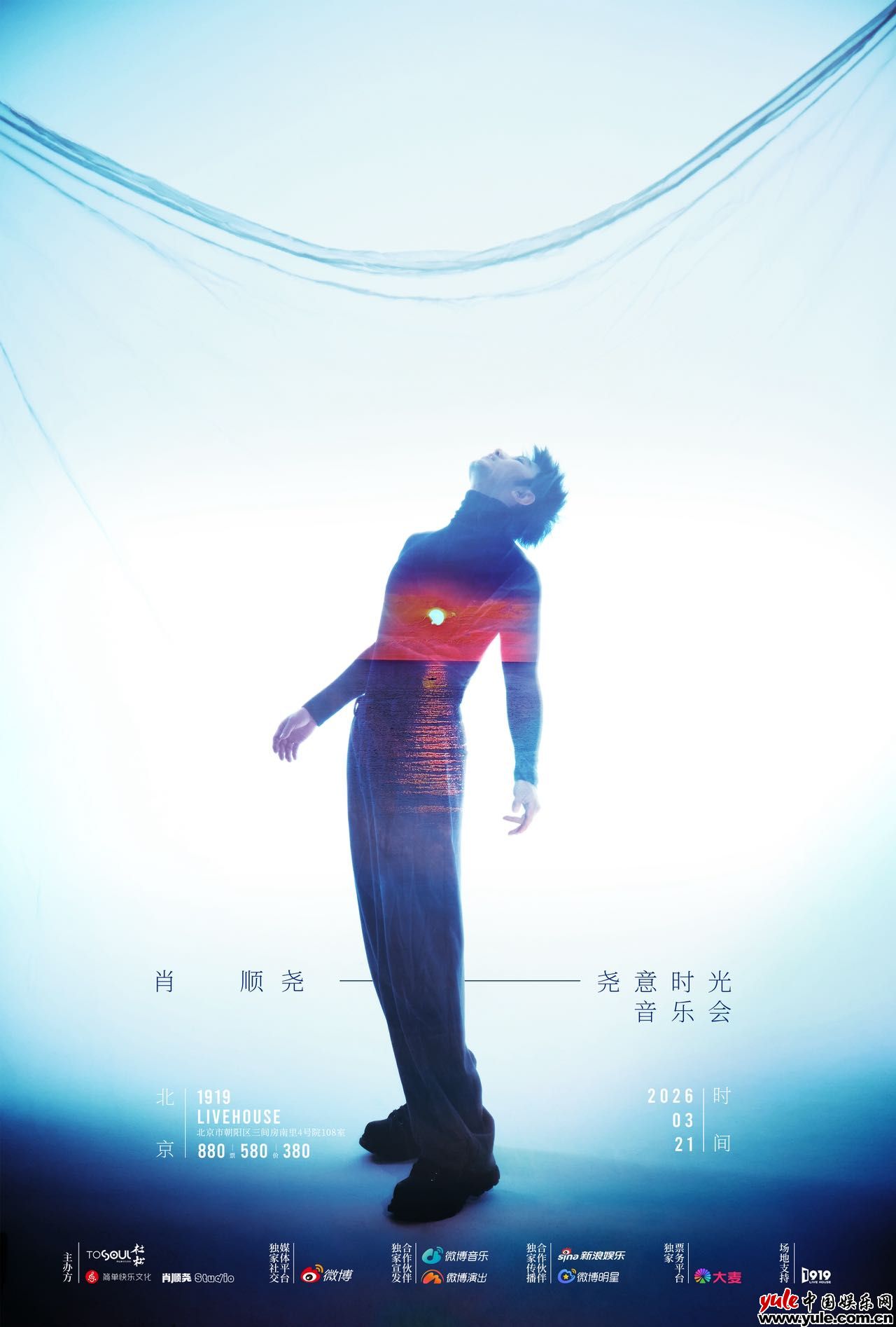 中国娱乐网讯 www.yule.com.cn 2026年2月28日12点,肖顺尧2026「尧意时光」摇滚音乐会北京站正式开启售票,3月21日19:30于北京1919·Live House开演,用沉浸式的摇滚现场碰撞跨越时光的温柔,打造限定生日惊喜。