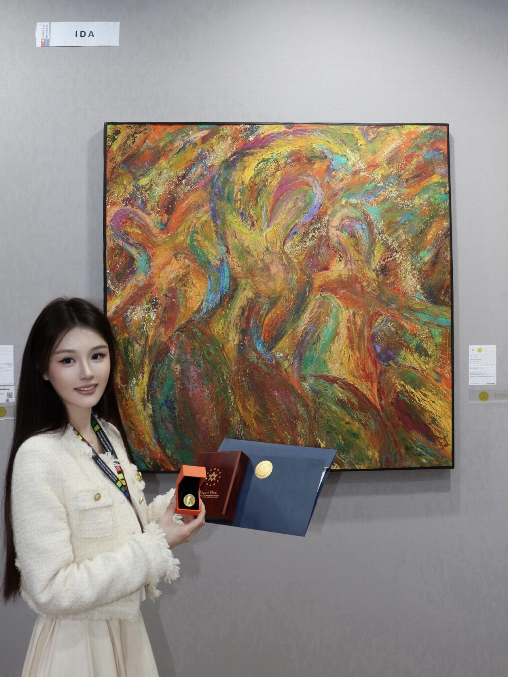 Erya Gao作为艺术理论类博士,长期深耕艺术领域,具备扎实系统的艺术理论功底,曾从事艺术研究与创作工作,并有大学任教经历。她将理论研究与艺术实践相结合,形成了鲜明的个人创作风格。其作品以女性精神与生命力量为内核,以抽象表现为主要语言,色彩浓烈、富有张力,兼具东方意境与国际表达。此次参展作品《滋生》以生命觉醒与精神生长为主题,凭借独特视觉语言与深刻内涵,获得国际评审团高度认可。