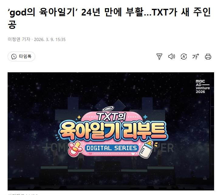 公开的视频中,写有《TXT的育儿日记重启版(Digital Series)》的标题,以及“《god的育儿日记》时隔24年复活”的字样。长期以来备受喜爱的《育儿日记》将与新主人公一起回归。