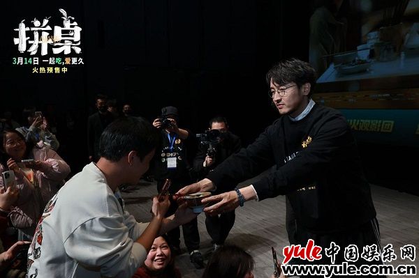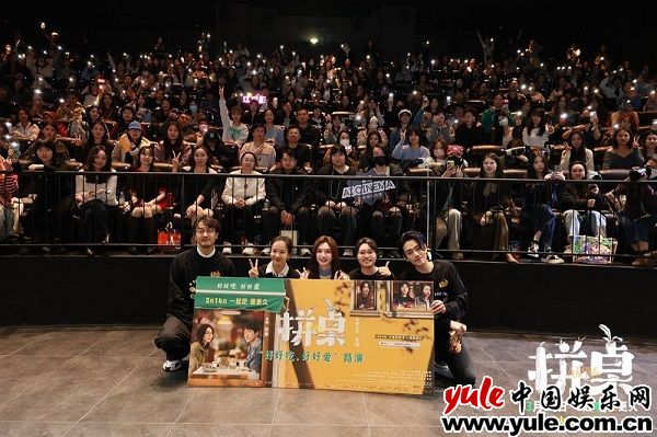 中国娱乐网讯 www.yule.com.cn 由上影集团领衔出品,张律监制,陈洁担任制片人,吴靖担任编剧并执导,王传君、江疏影领衔主演,李雪琴、郑云龙、傅首尔、刘佳主演,王彩平、杜家毅特邀出演,吴冕、白举纲、田野(老四)特别出演,田小洁、罗海琼、齐溪、许龄月、葵葵友情出演的电影《拼桌》,于3月12日在上海举行“好好吃,好好爱”主题首映礼及路演活动。编剧兼导演吴靖携领衔主演王传君、江疏影,主演李雪琴、郑云龙等主创悉数亮相。映后互动环节,主创团队熟人局欢乐满满,与观众热情交流,全员诚挚分享创作心路,详解美食与爱的链接。电影将生活的美好落点于一餐一饭中,向观众传达“爱人先爱己”的内核,收获了观众与嘉宾们的一致好评,现场观众情绪高涨,高能整活掌声不断。电影将于3月14日白色情人节全国上映,当前火热预售中,敬请期待!