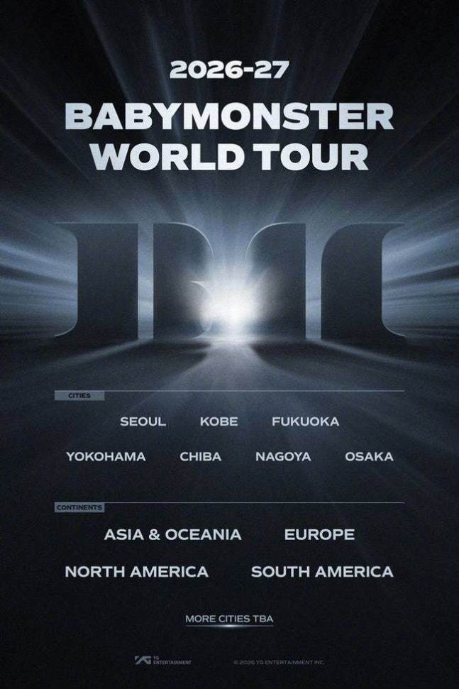 中国娱乐网讯 www.yule.com.cn YG娱乐于16日通过官方SNS发布《2026-27 BABYMONSTER WORLD TOUR ANNOUNCEMENT》,正式公开BABYMONSTER新一轮世界巡演计划。正如总制作人杨贤硕此前预告,本次巡演将于今年6月正式启动,整体巡演蓝图首次揭开。
